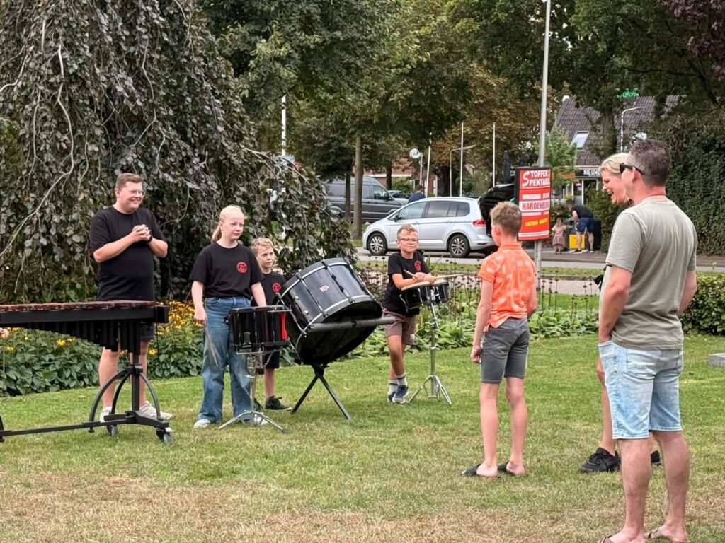 Afgelopen zaterdag stond de Vroomshoopse Muziektuin helemaal in het teken van muziek en plezier. Harmonie Vroomshoop organiseerde een dag vol ontdekkingen, waar kinderen de kans kregen om verschillende instrumenten uit te proberen en samen muziek te maken.