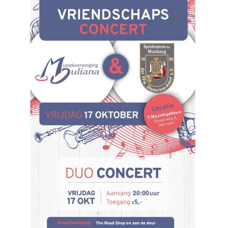 Wat muziek bijzonder maakt, is dat het geen grenzen kent. Dit jaar ontvangen wij met veel plezier onze muziekvrienden van Spielmanns- und Musikzug Adorf, die speciaal naar Den Ham komen voor ons Vriendschap uitwisselingsweekend. Samen delen we al 53 jaar dezelfde passie: muziek maken.