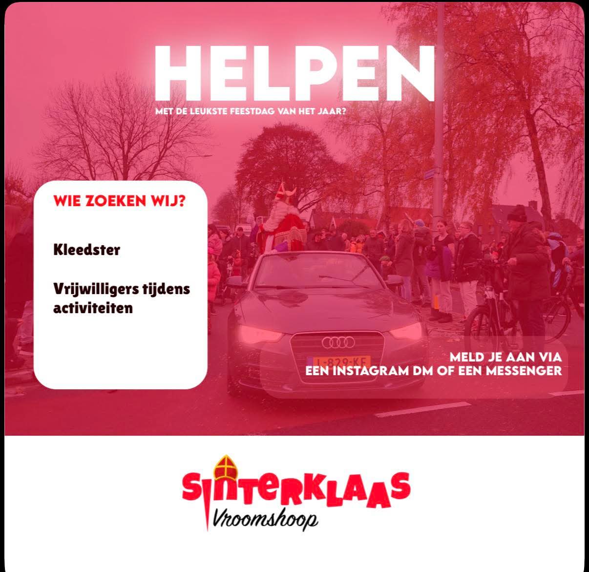 Op zaterdag 15 november komen Sinterklaas en zijn pieten weer aan in Vroomshoop. Om alles soepel te laten verlopen hebben wij jouw hulp nodig!