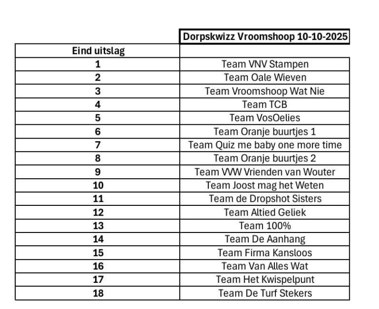Tot volgend jaar bij de volgende editie van de Dorpskwizz Vroomshoop!