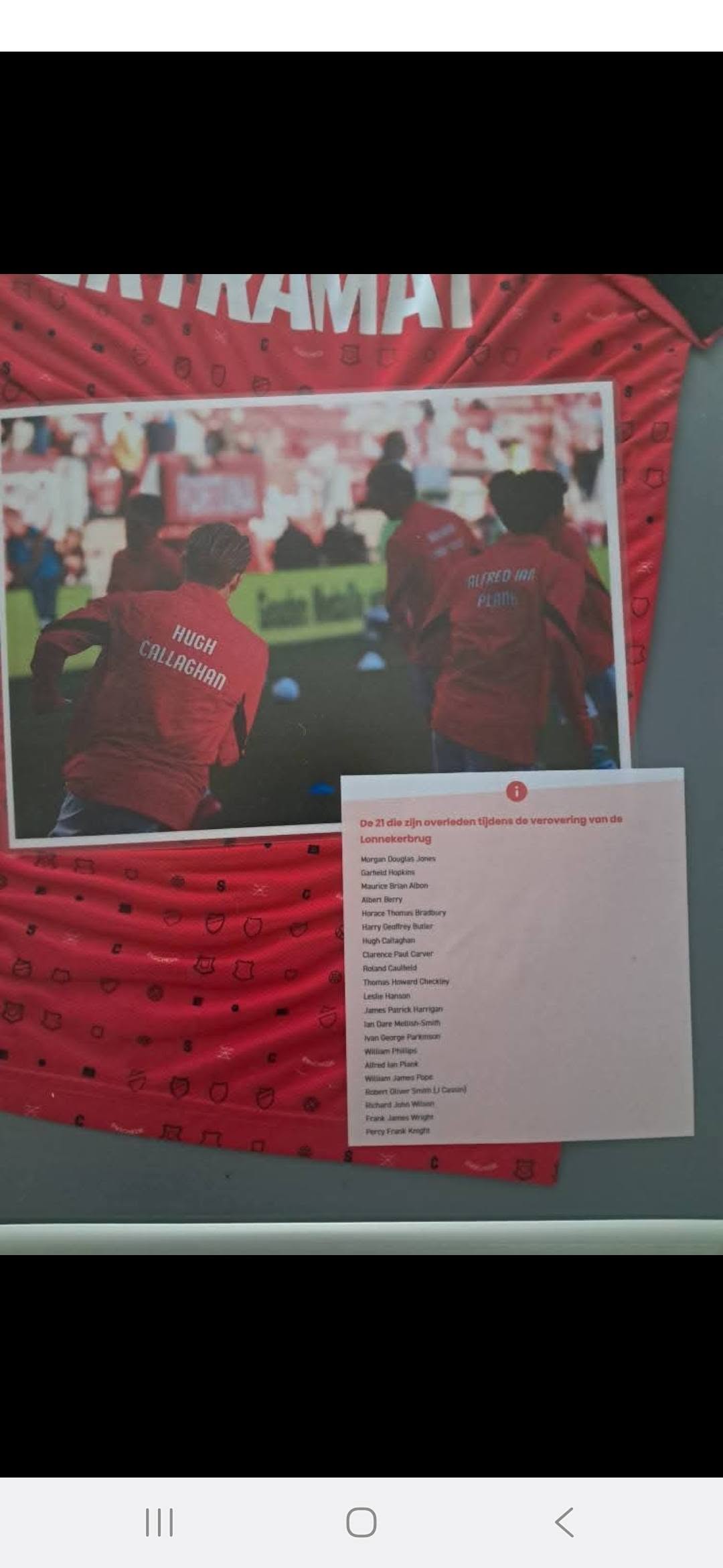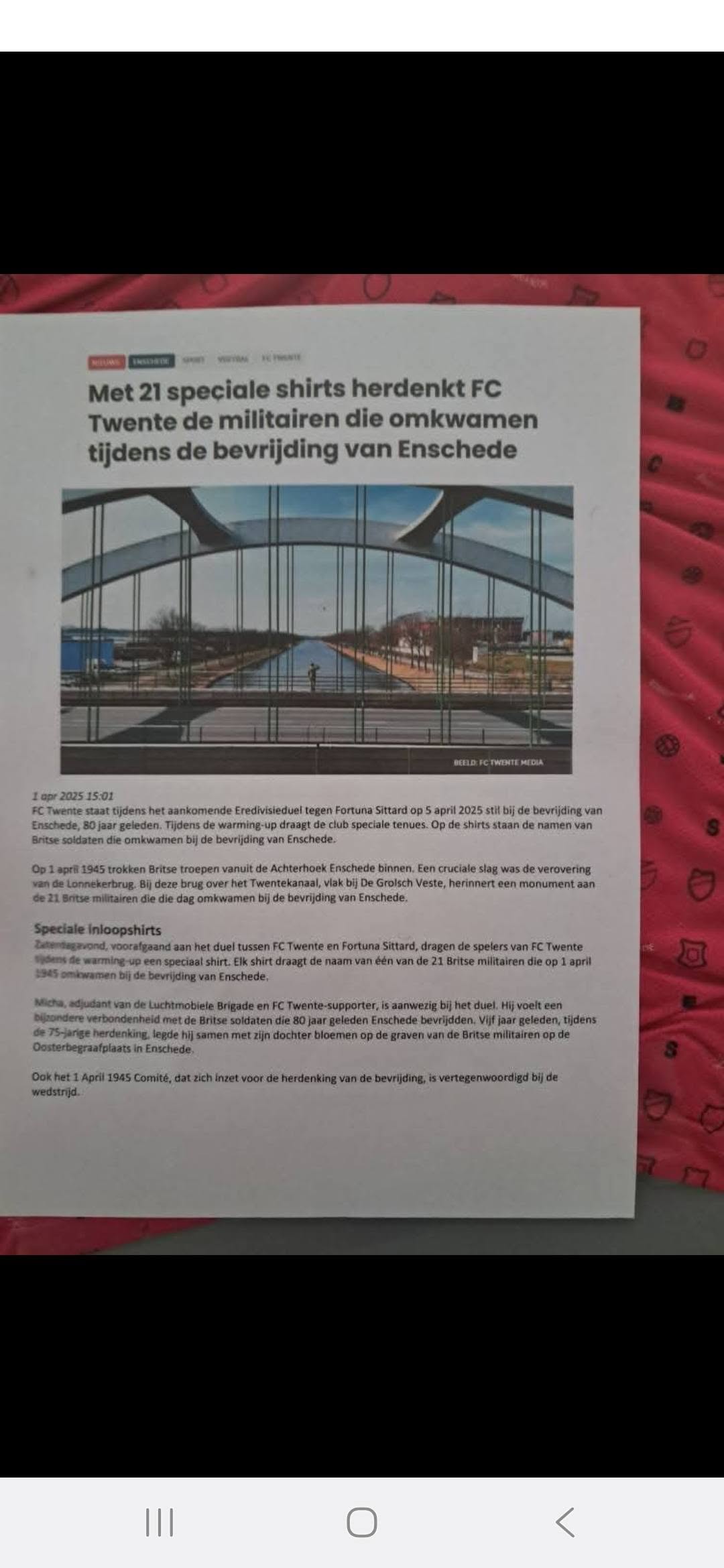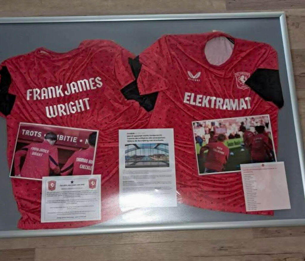 Twee unieke herdenkingsshirts van FC Twente (zie foto’s) zijn gestolen. Deze rode shirts werden gedragen tijdens de warming-up op 5 april 2025, ter nagedachtenis aan Britse militairen die in 1945 sneuvelden bij de bevrijding van Enschede.