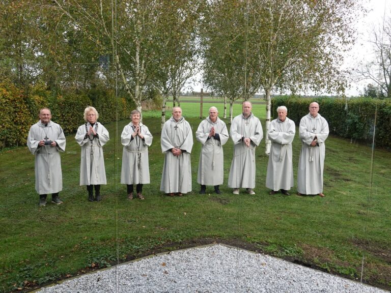 Het afscheid van John de Vries als bestuurslid van Levend Vroomshoop is niet onopgemerkt voorbijgegaan. Bij de Mariakapel aan de Geerdijk werden John en zijn vrouw Jenny verrast door een eerbiedwaardige processie van zes monniken en twee nonnen.
