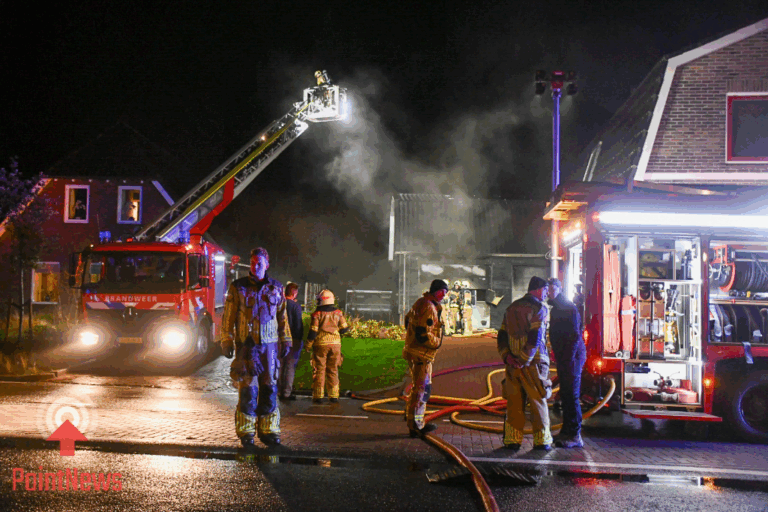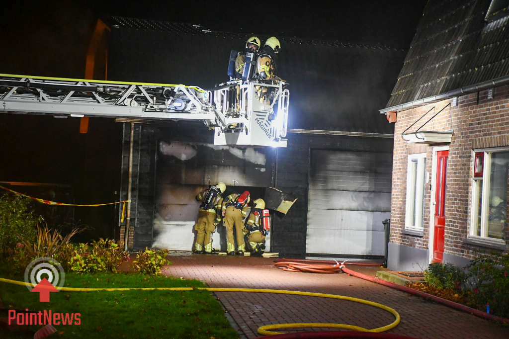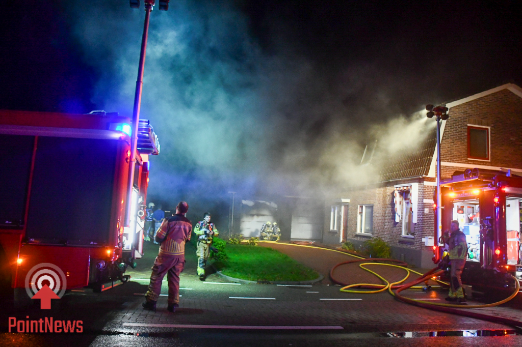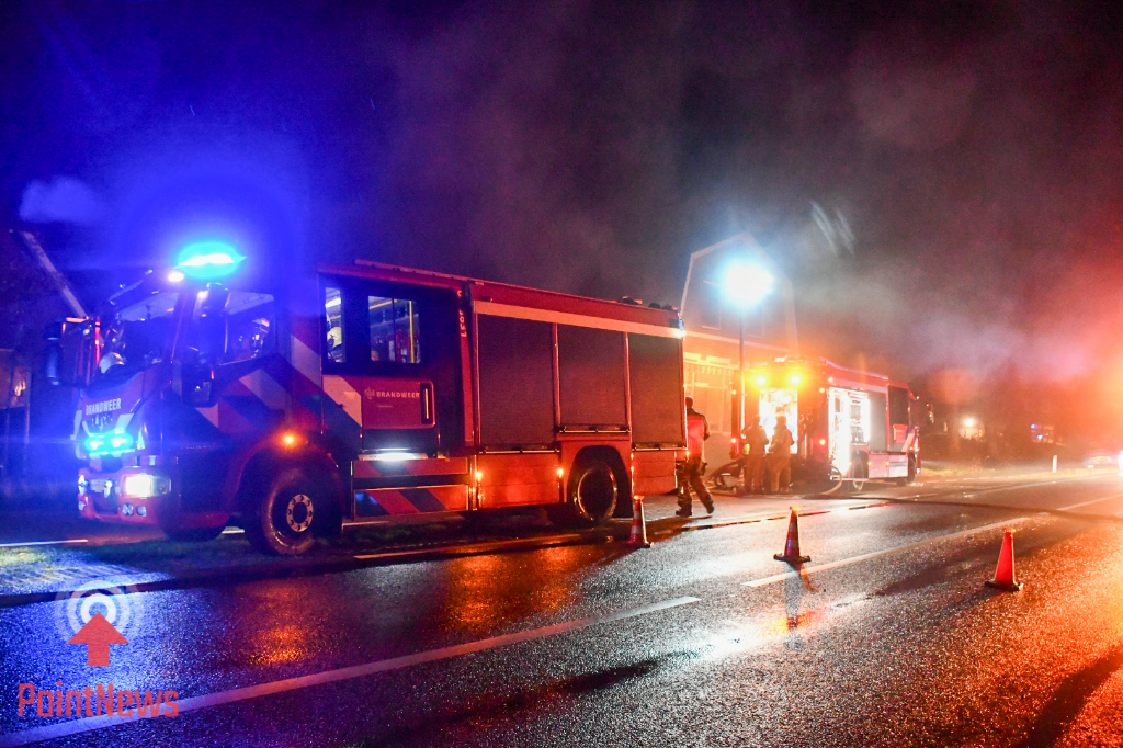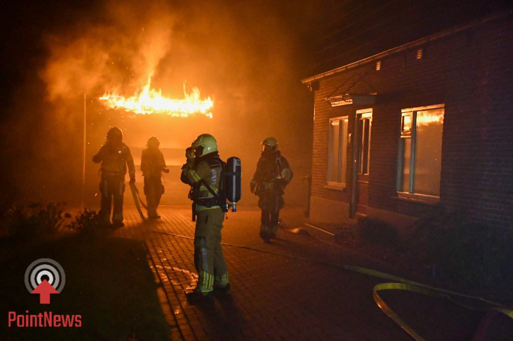 Toen de eerste hulpdiensten arriveerden, stond het bijgebouw volledig in lichterlaaie. In de garage zou mogelijk een caravan hebben gestaan. De weg werd afgesloten om de hulpverleners voldoende ruimte te geven om hun werk te doen.