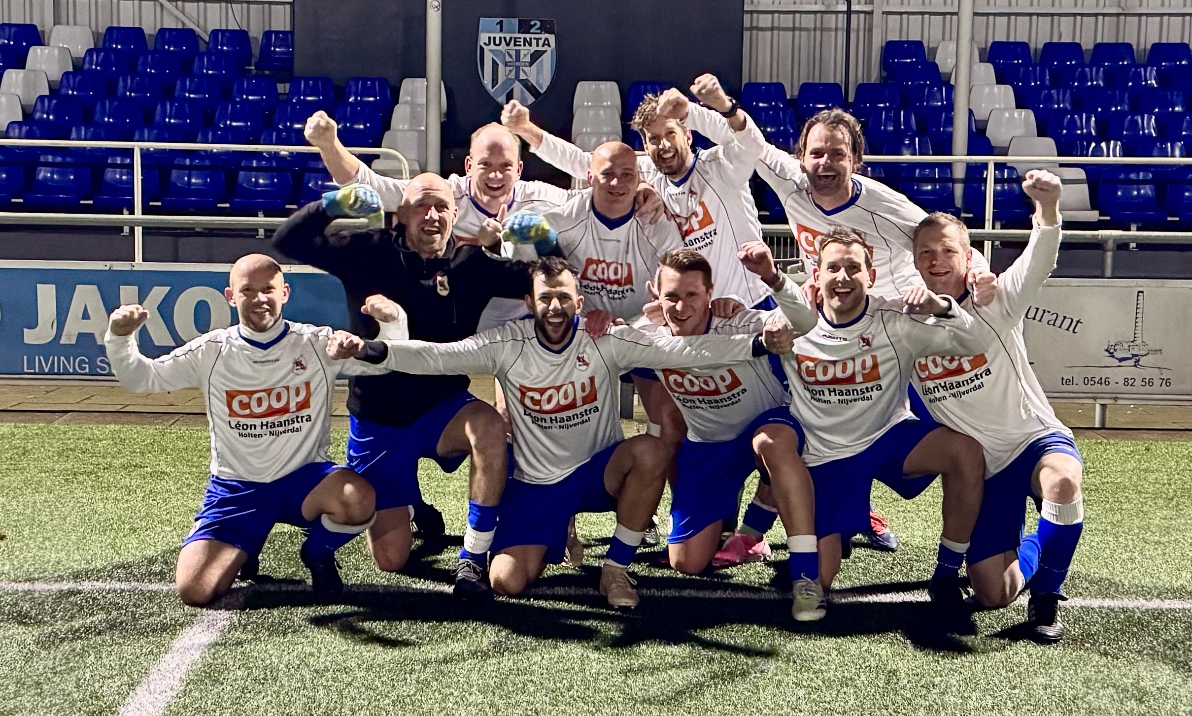 Op de laatste speelavond bij Juventa ’12 in Wierden pakten de Hammenaren met prima zeges de titel. De (semi-) oude cracks van de blauwwitten wonnen in de gehele competitie 16 van de 20 wedstrijden en hadden een vorstelijk doelsaldo van plus 36.