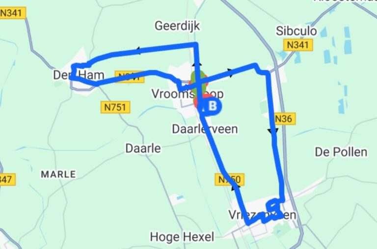 De route is dit jaar hetzelfde als vorig jaar. Ook de tijden zijn vergelijkbaar met vorig jaar. De stoet start in Vroomshoop, rijdt vervolgens via Geerdijk en Westerhaar naar Vriezenveen, om daarna weer terug te keren naar Vroomshoop, waar het evenement feestelijk wordt afgesloten. Een foto van de volledige route is bij dit bericht toegevoegd.