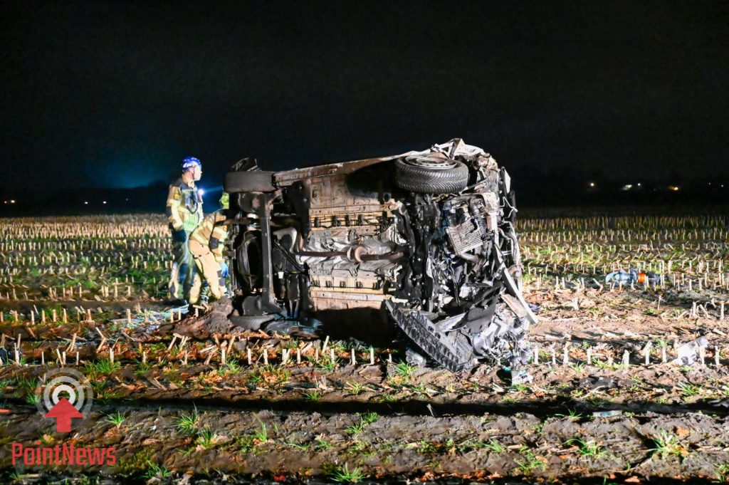 Een bestelbus is vanaf de Fortwijk rechtdoor het kruispunt opgeschoten en in een aangrenzend maisland tot stilstand gekomen. Het voertuig kwam op zijn zijkant terecht, waarbij het motorblok losgeraakt en vóór het busje in het land lag. Bij aankomst van de hulpdiensten was de bestuurder niet meer aanwezig en werd als spoorloos beschouwd.