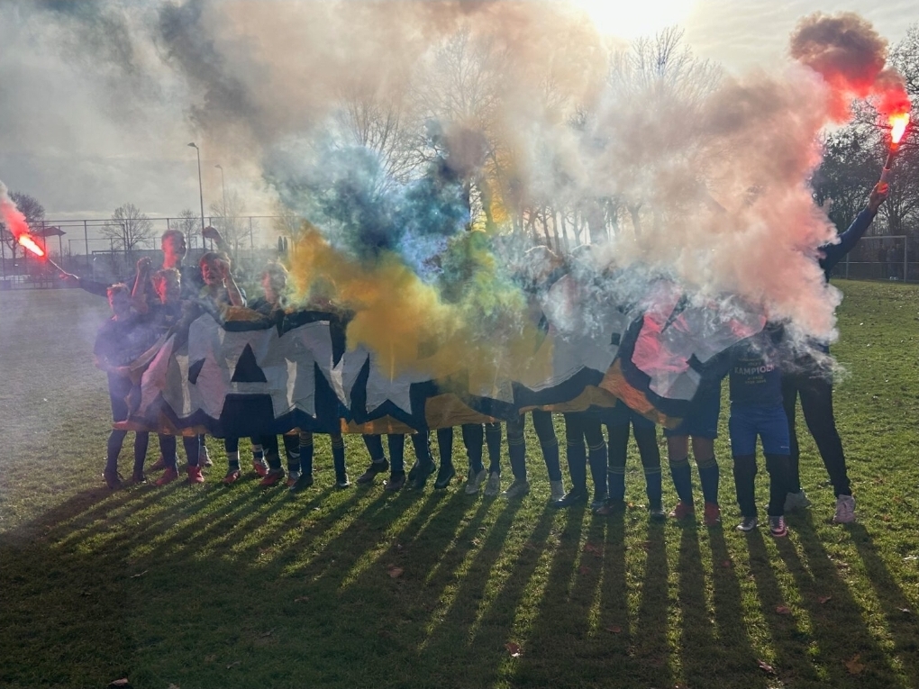 Na een wat nerveuze beginfase sloegen de spelers van de leiders en trainers Maxim van Brussel, Tim Visser en Bert Verschoor toe. Uiteindelijk werd het 4-0 voor de blauw-gele formatie en was het felbegeerde kampioenschap een feit.