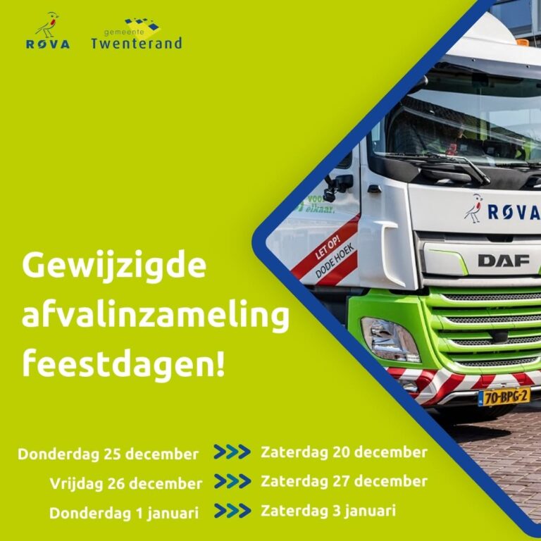 Het ROVA-Klantcontactcentrum is op woensdag 24 december en woensdag 31 december tot 16.00 uur bereikbaar via telefoonnummer 038 427 37 77 of via www.rova.nl/contact. Op donderdag 25 december, vrijdag 26 december en donderdag 1 januari is het klantcontactcentrum gesloten.