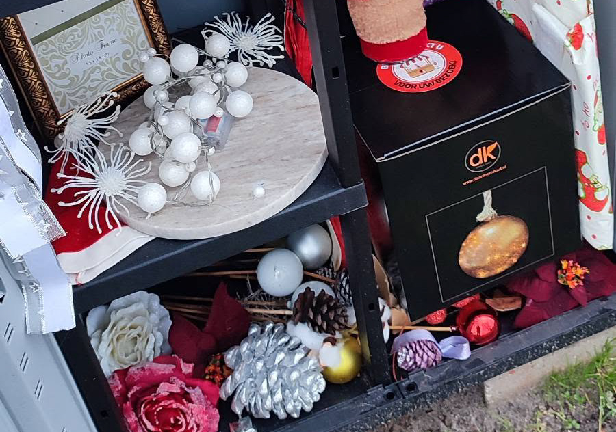 Vroomshoop – Aan de 2e Blokweg 12 in Vroomshoop staat de bekende Hobbieb-kast, een kast die normaal gevuld is met allerlei uiteenlopende spullen om te delen. Deze keer is de kast helemaal in kerstsfeer en gevuld met diverse kerstspullen.