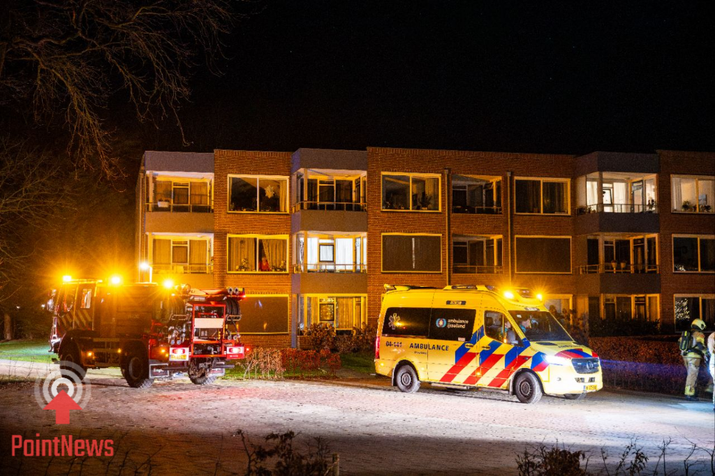 Daarbij is de deur van een naastgelegen appartement geforceerd, omdat er geen reactie kwam na aanbellen en kloppen. De bewoner bleek uiteindelijk diep te slapen en verkeerde niet in gevaar.