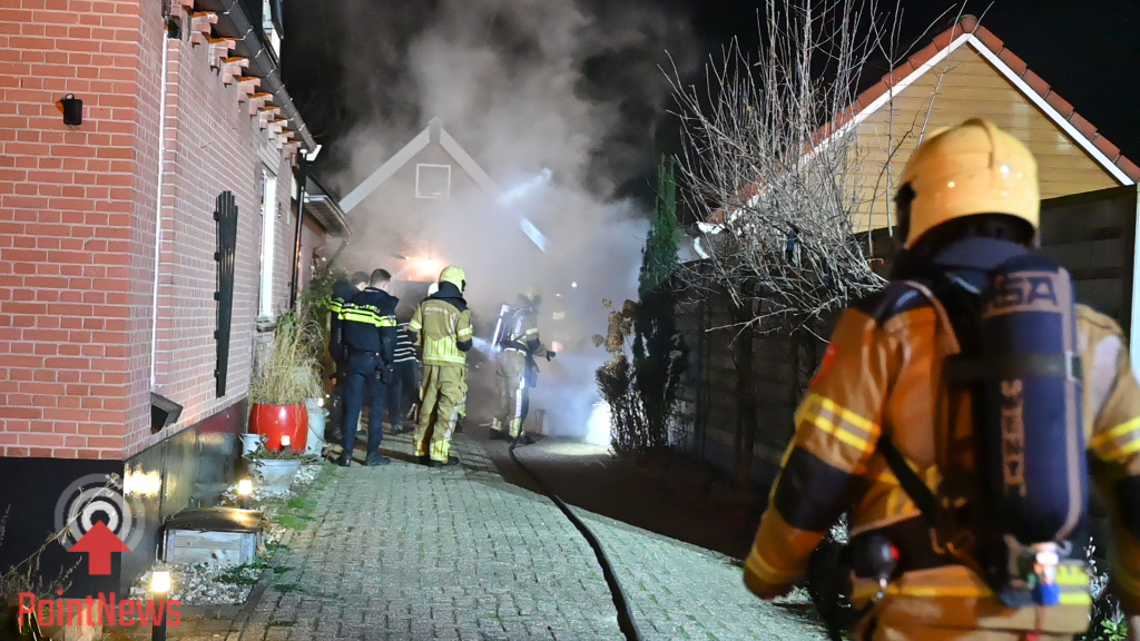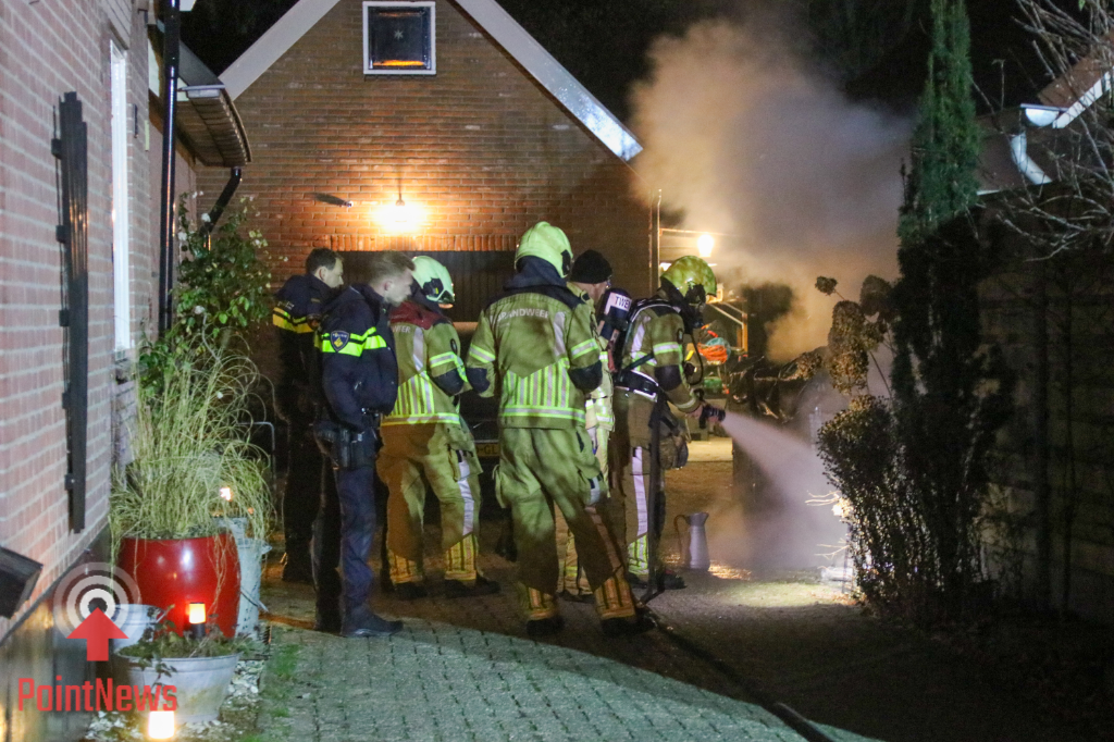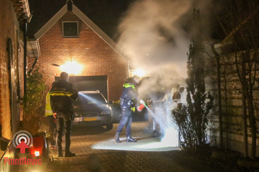 Politieagenten en omstanders die in de buurt waren, hebben direct een eerste bluspoging gedaan, waarna de brandweer het incident heeft overgenomen. De brand zorgde voor schade aan de aangrenzende schuur.