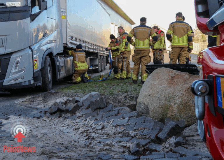 De bestuurder van de vrachtwagen zag bij het indraaien van een laad- en losplek een steen over het hoofd. Hierdoor raakte het voertuig beschadigd en ontstond er een lekkage.
