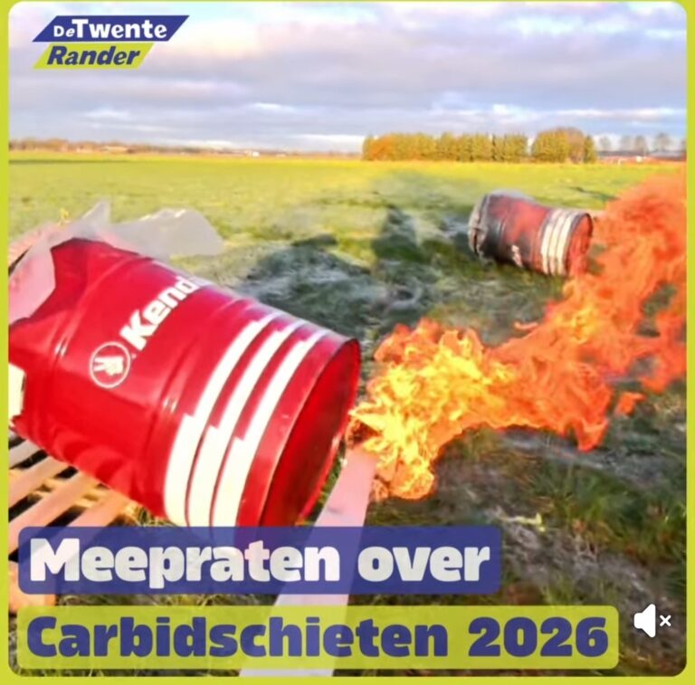 De Gemeente Twenterand zoekt carbidschieters om samen afspraken te maken, overlast te voorkomen en de traditie te behouden. Denk mee en meld je aan via info@twenterand.nl o.v.v. Meedenken carbid.