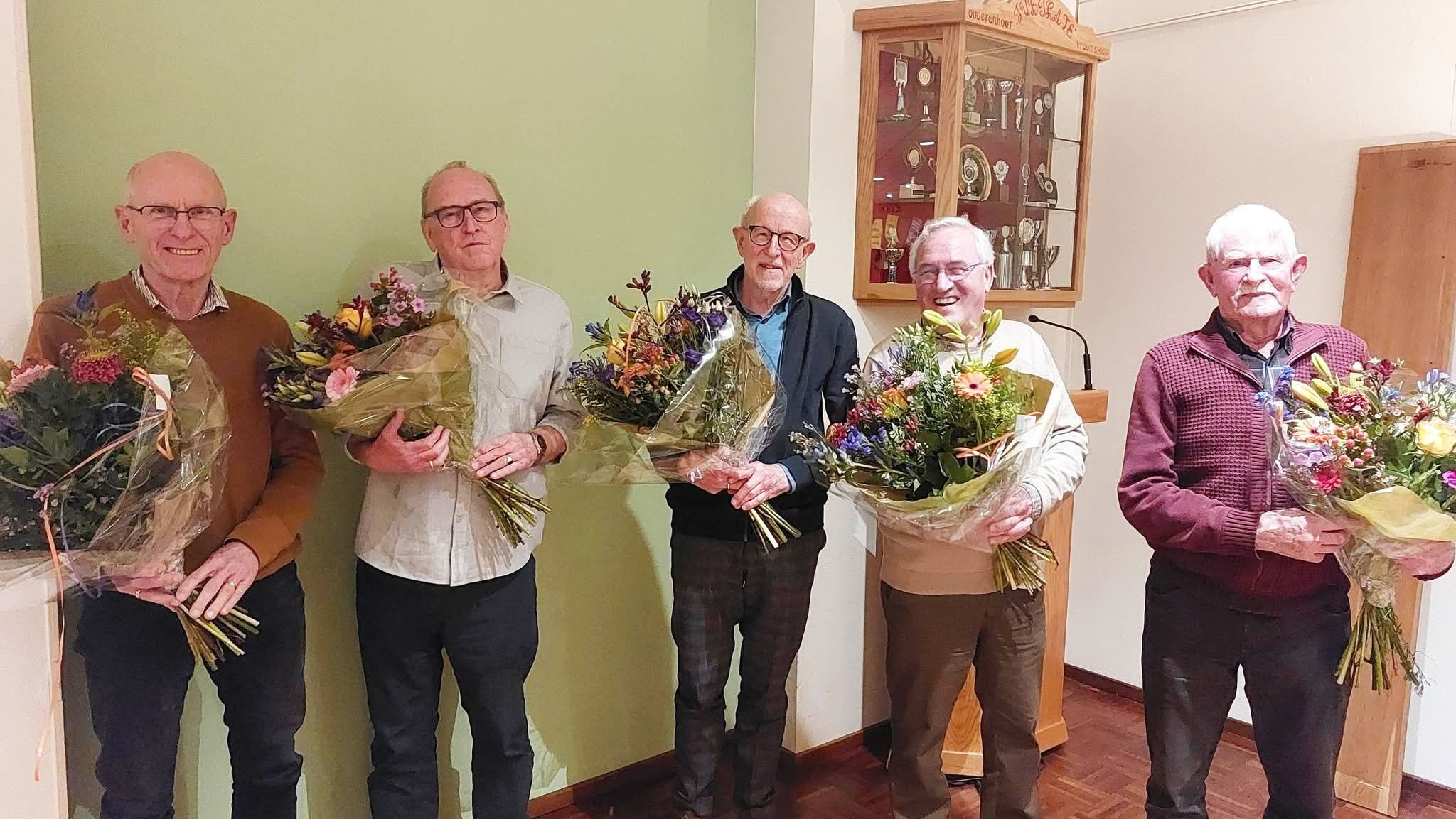 V.l.n.r: Jan Reefhuis, Jan Voortman, Gerrit Jansen, Aalt Palland en Henk Bos. Henk Jansen ontbreekt op de foto.
