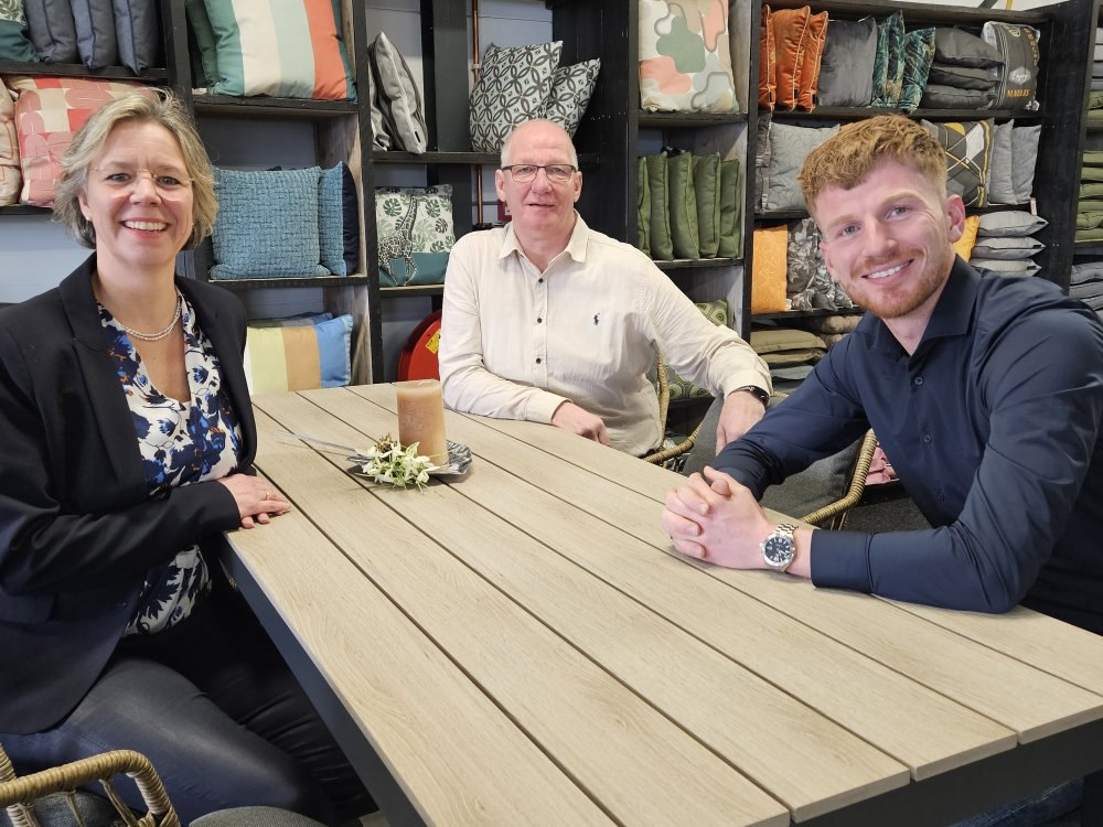 Na een goede indruk te hebben gekregen van de winkel, vraagt wethouder Van der Ham aan de ondernemers of zij ook nog een droom of wens hebben. “We hebben al twee prachtige winkels, eigen import van tuinmeubelen, een eigen fotostudio voor de fotografie van onze producten voor de website en een fijne samenwerking met zijn drieën”, somt vader Theo op. “Toch is er nog wel de wens om onze showrooms uit te breiden en door te groeien in het aantal winkels. Ook zouden we onze online verkoop nog willen verbeteren, zodat wij door het hele land klanten kunnen voorzien van onze prachtige tuinmeubelcollectie.”