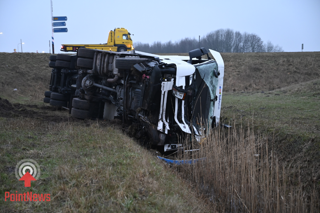 Hulpdiensten kwamen massaal ter plaatse. De chauffeur van de vrachtwagen is per ambulance overgebracht naar het ziekenhuis. Over de aard en ernst van het letsel is op dit moment niets bekend.