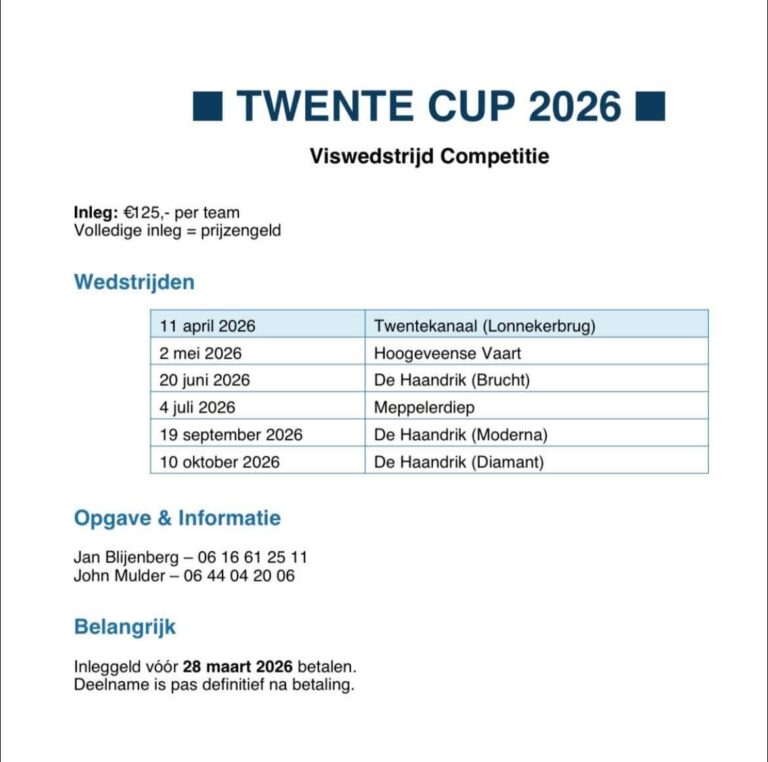 Snippe Hengelsport organiseert I.S.M. Meuntje Twente cup teams competitie
