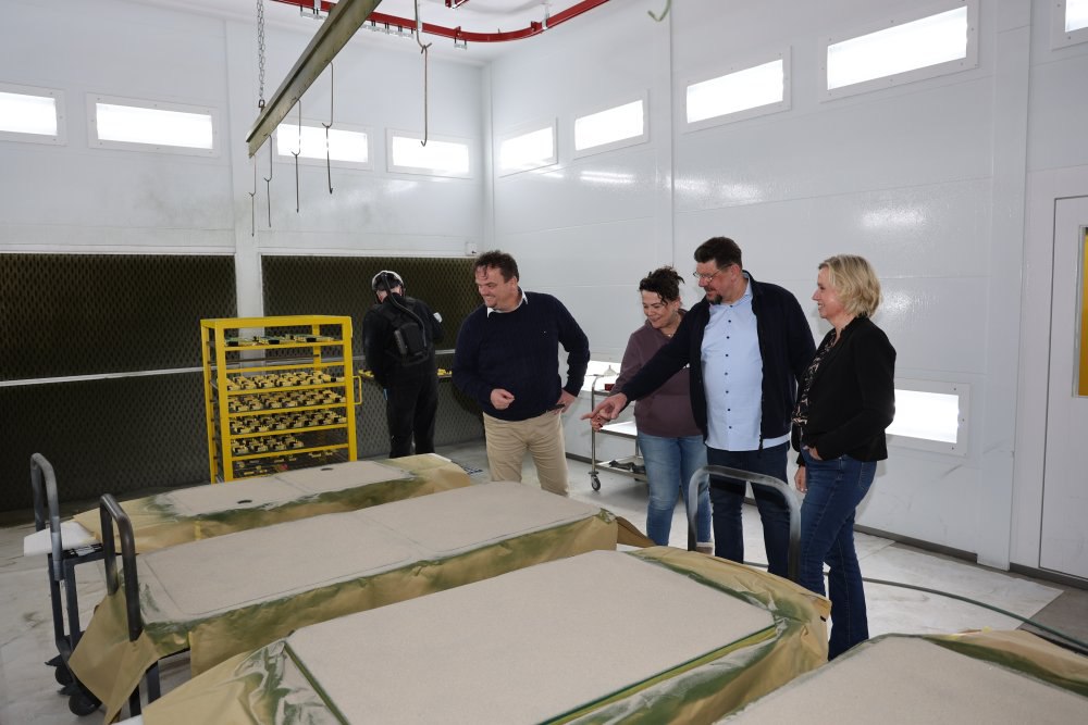 Tijdens de rondleiding ontmoeten de bezoekers ook de drie kinderen van het ondernemersstel, die al enkele jaren meewerken binnen het bedrijf. Eén van de zoons demonstreert hoe hij met uiterste precisie een laklaag aanbrengt op een groot productonderdeel. Wethouder Hof kijkt bewonderend toe. “Dit gaat veel verder dan even een lakje aanbrengen,” concludeert hij. De wethouder spreekt zijn waardering uit voor de komst van Hemar Coating naar Twenterand. “We zijn blij dat jullie voor onze gemeente hebben gekozen,” zegt hij. “Hemar Coating is een prachtige toevoeging aan het lokale bedrijfsleven.”