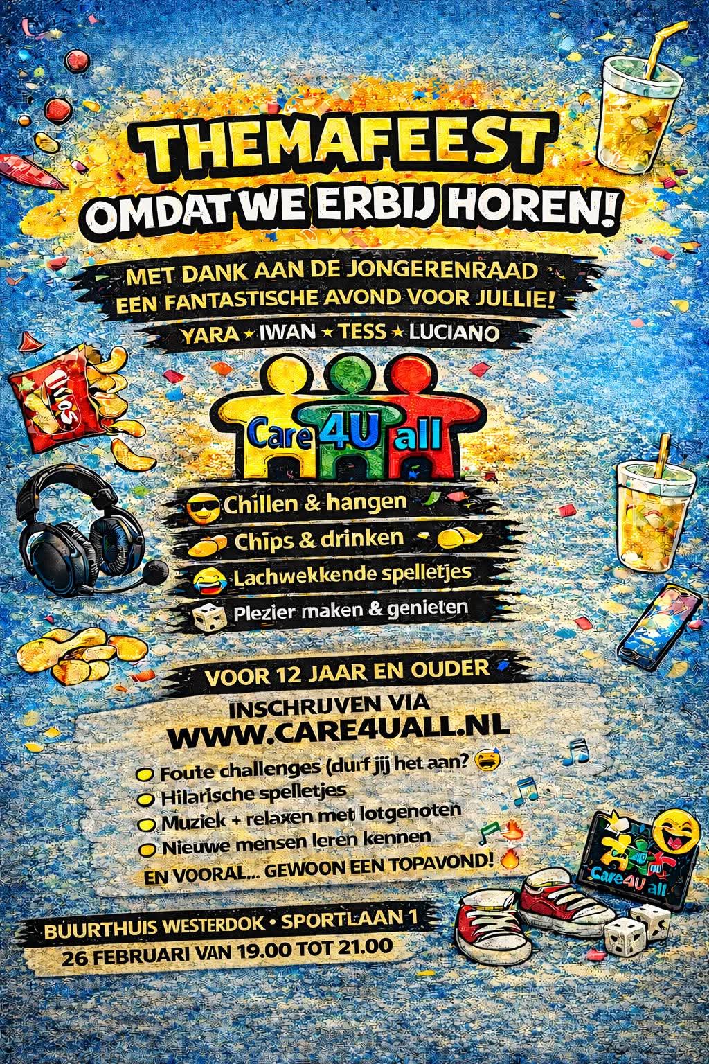 Speciaal voor jullie georganiseerd dankzij de jongerenraad. Zin in een avond vol gezelligheid, lachen en gewoon lekker chillen? Dan wil je dit niet missen