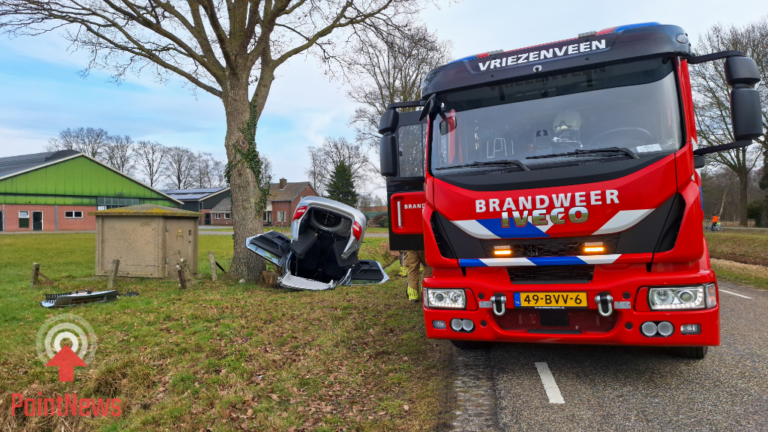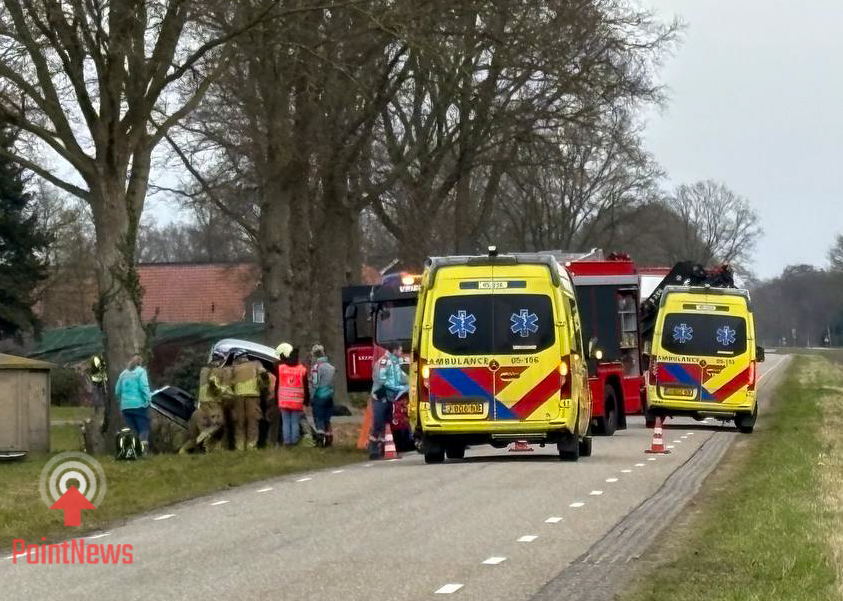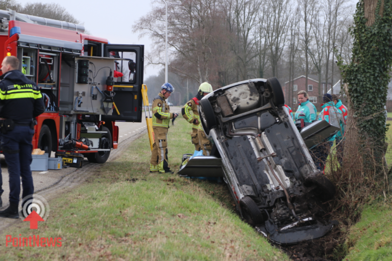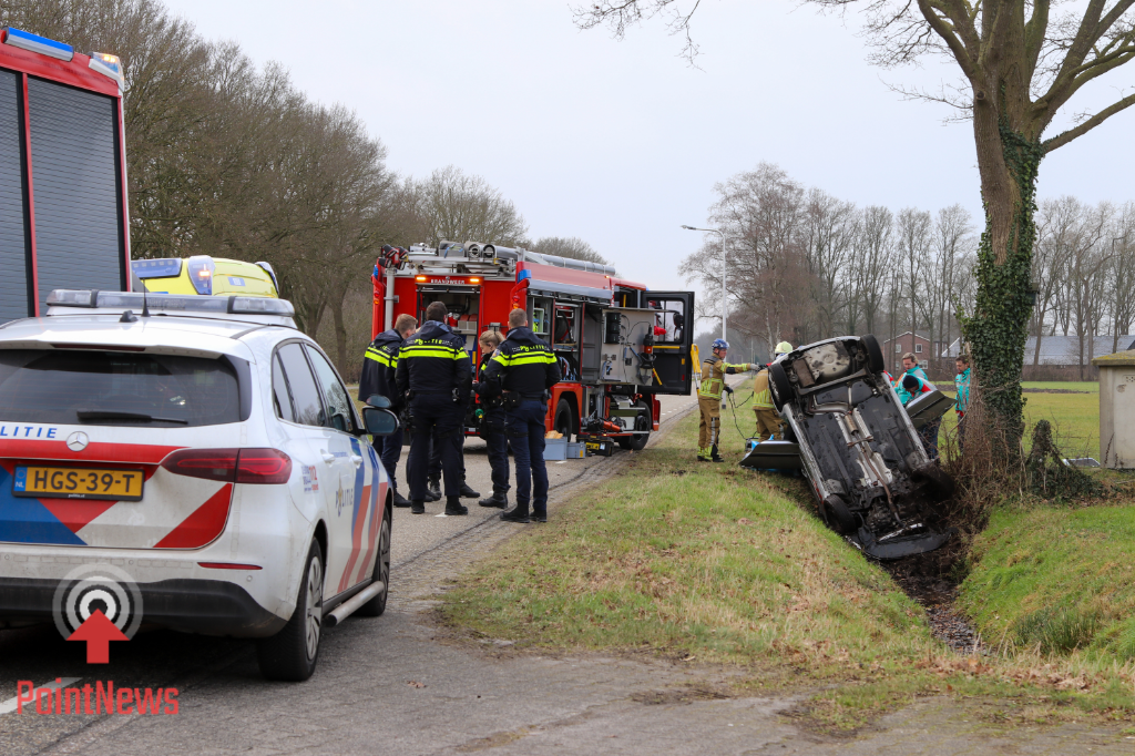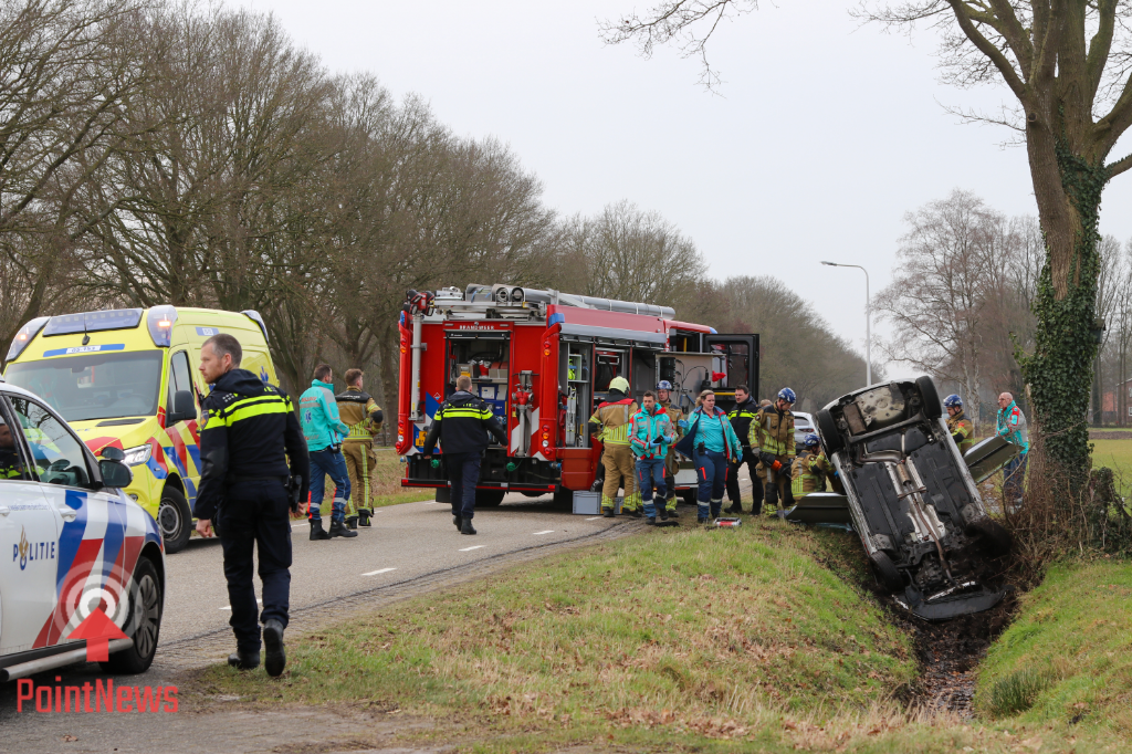 Door een nog onbekende oorzaak raakte de auto links van de weg in de berm. Het voertuig sloeg vervolgens over de kop en kwam tot stilstand tegen een boom in een sloot langs de weg.