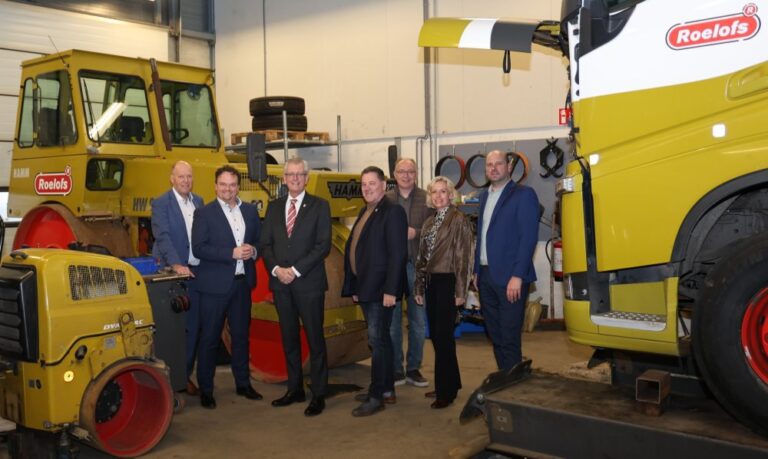 Emissieloze bouwplaatsen, woningen verwarmen via waterleidingen onder sportvelden, het investeren in de allereerste elektrische asaltspreidmachine; het zijn innovaties die laten zien dat Roelofs in Den Ham al ver vooruitkijkt. Het college van B&W en de bedrijfscontactfunctionaris van de gemeente Twenterand kregen onlangs een exclusief inkijkje in deze ontwikkelingen tijdens een werkbezoek aan het hoofdkantoor. De directie, Gerard Hoiting, Marcel Grit en Stephen Haverkamp, nam hen mee in de wereld van een bedrijf dat al sinds 1960 constant in beweging is.