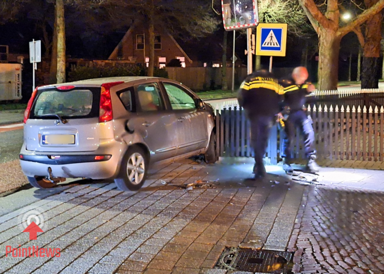 Door de klap schoot één van de voertuigen door en kwam tot stilstand tegen het hekwerk van een woning aan de kruising. Het hek liep daarbij schade op.