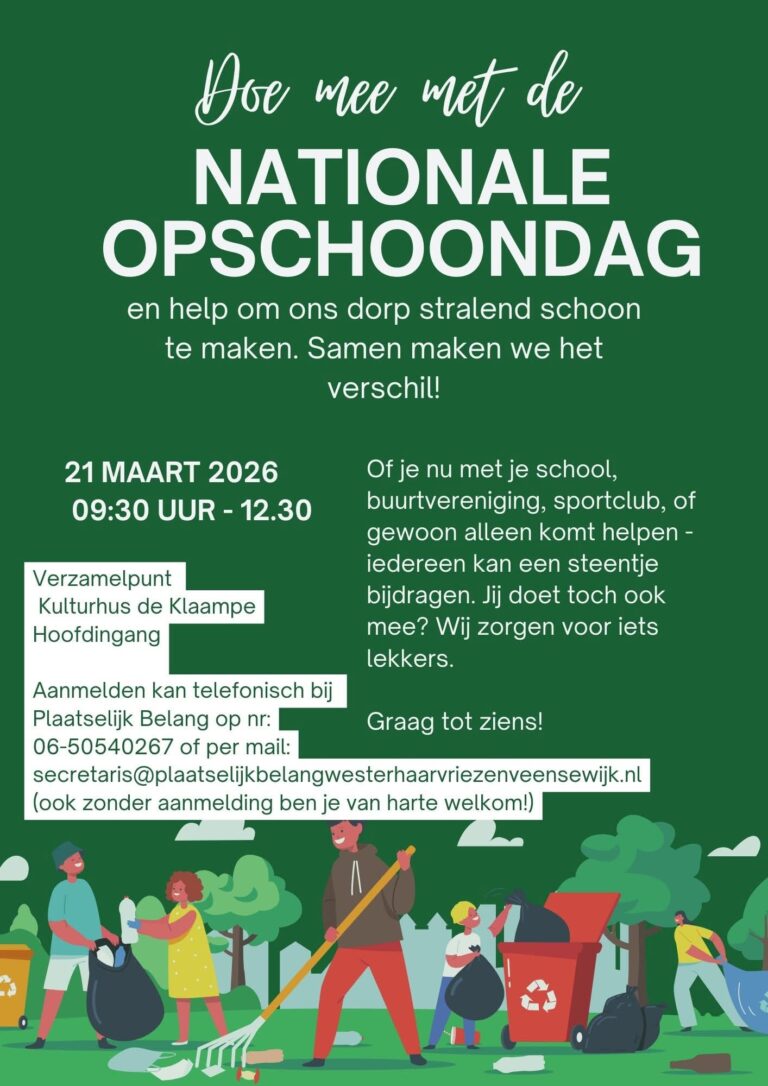 Interesse? Stuur een berichtje naar secretaris@plaatselijkbelangwesterhaarvriezenveensewijk.nl en geef je op als vrijwilliger.