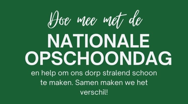 Op 21 maart doet het dorp mee aan de Nationale Opschoondag. Voor elke straat wordt gezocht naar enthousiaste inwoners, verenigingen of bedrijven die het voortouw willen nemen bij het schoonmaken van hun wijk