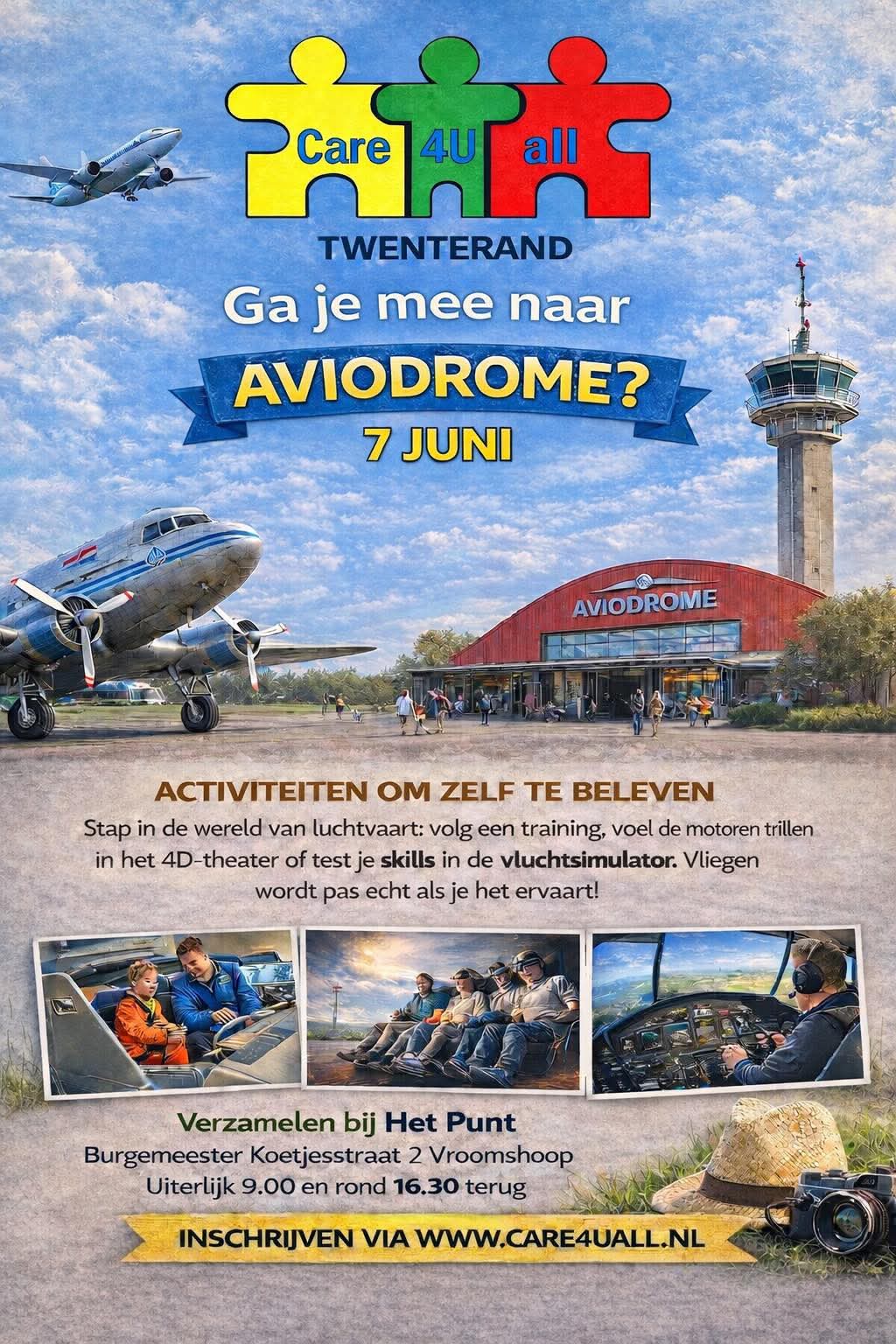 Op 7 juni gaan we op avontuur naar Aviodrome Lelystad! Een dag vol actie en beleving: Stap in de wereld van de luchtvaartTest je skills in een vluchtsimulator. Beleef het 4D-theater