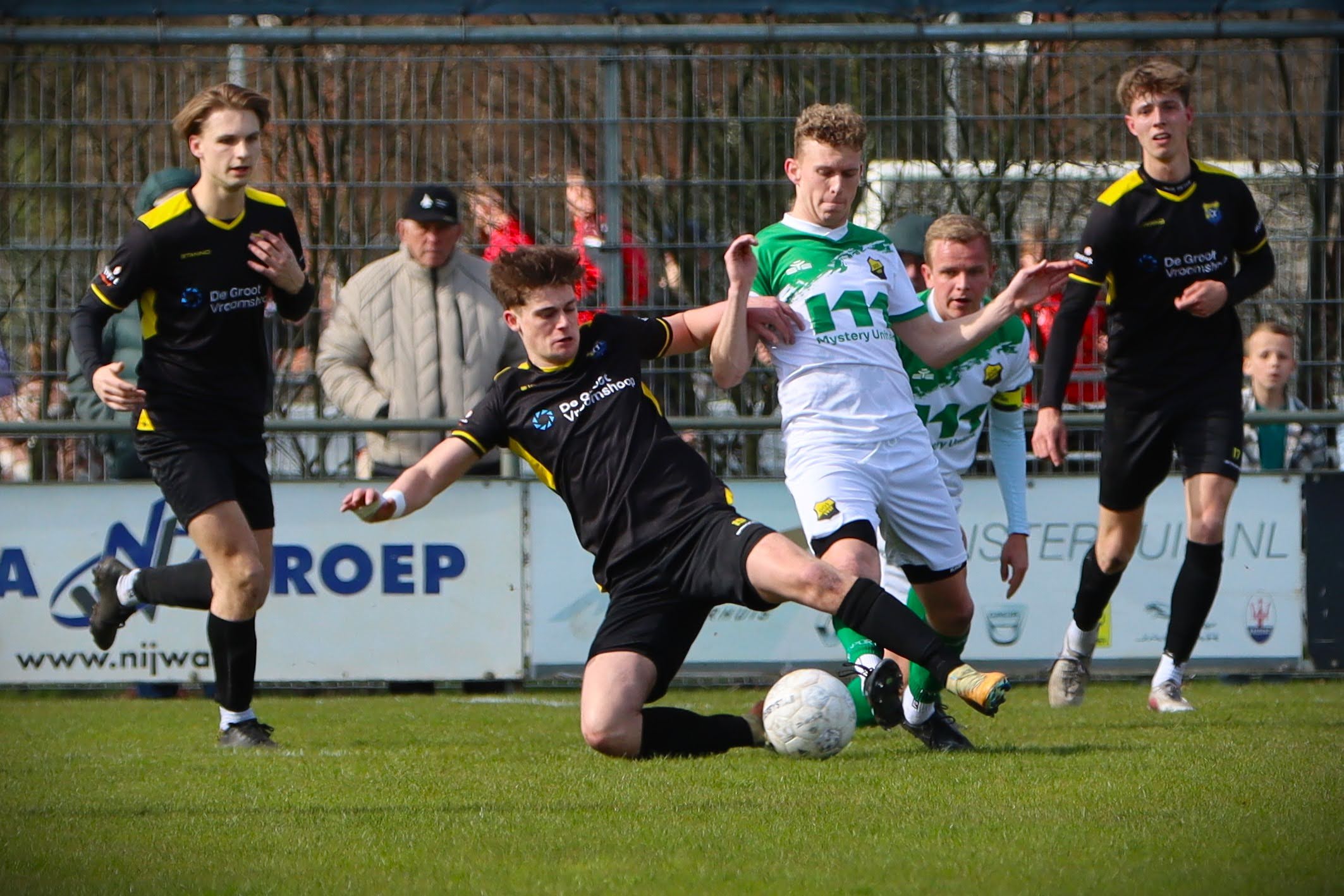 DOS’37 slaagde er ook in de tweede helft niet in om controle te krijgen. Wissels brachten geen ommekeer en het spel bleef moeizaam verlopen tegen een strijdlustig Vroomshoopse Boys dat voor elke meter vocht.