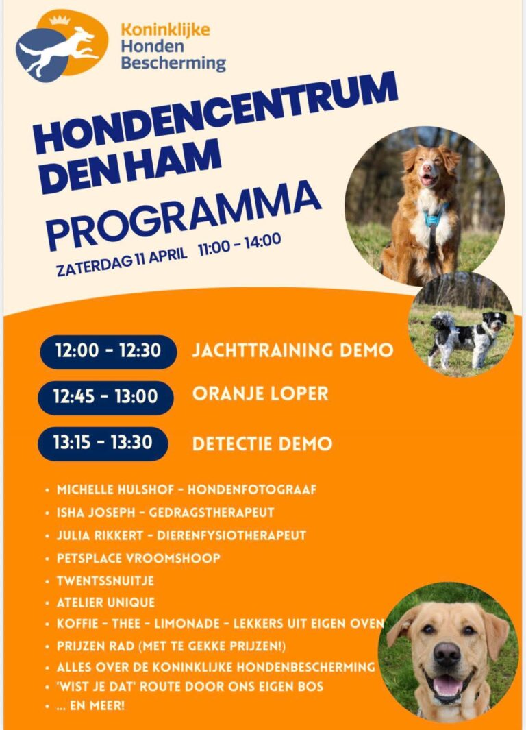 Kom je zaterdag ook naar de open dag van ons Hondencentrum in Den Ham? We zouden het heel leuk vinden als je erbij bent! Het belooft perfect weer te worden