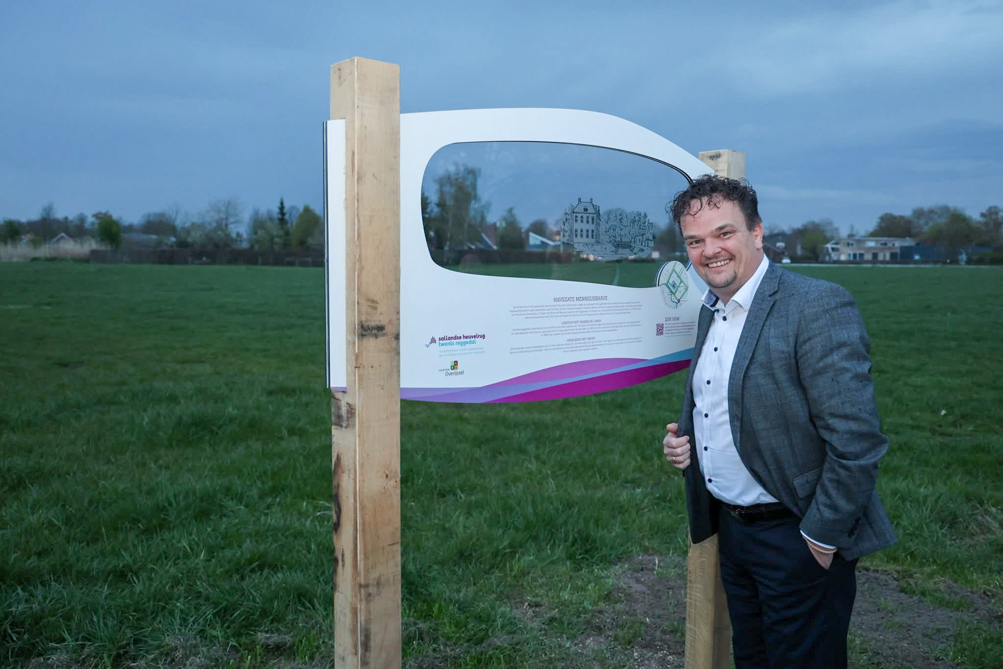 Wethouder Arjan Hof onthulde bij de Linderbeek een doorkijkvenster dat de verdwenen havezate Mennigjeshave opnieuw zichtbaar maakt.