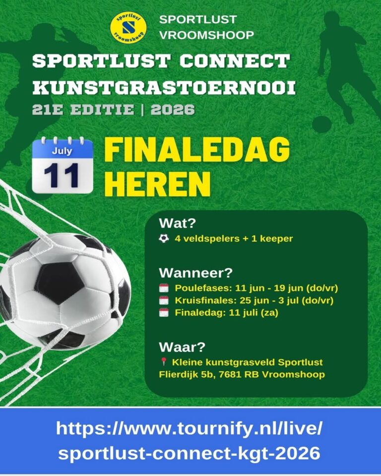 Het is weer zover: het Kunstgrastoernooi van Sportlust Vroomshoop keert terug voor de 21e editie — en de voorbereidingen zijn in volle gang!