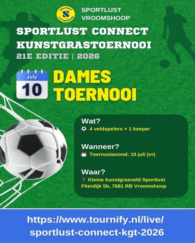 Dit jaar zetten we een nieuwe stap. Met de komst van sponsorvereniging Sportlust Connect — waar ook voormalig toernooisponsor Bakkerij van der Goot deel van uitmaakt — krijgt het toernooi een nieuwe naam en gaat het verder als het Sportlust Connect Kunstgrastoernooi. Een nieuwe naam, met dezelfde vertrouwde sfeer en beleving