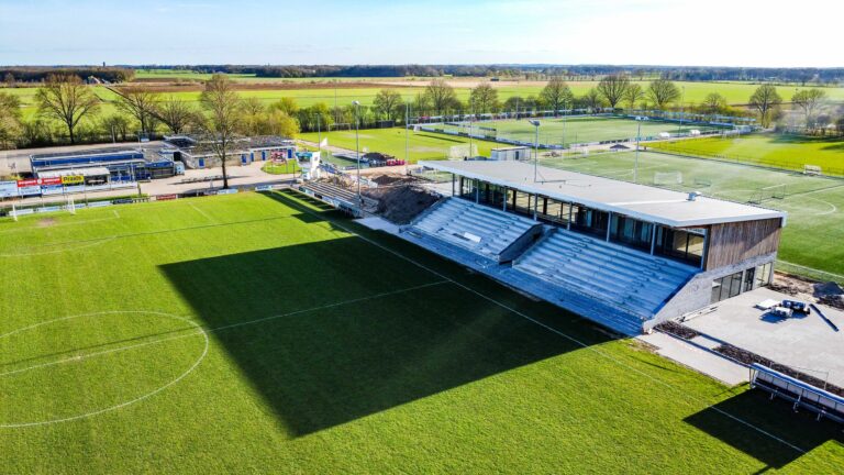 Vroomshoopse Boys kan met recht trots zijn op de realisatie van dit prachtige onderkomen, waarmee de vitale vereniging weer decennia vooruit kan. Op zaterdag 27 juni komen de profs van eredivisionist FC Twente uit Enschede voor een feestelijke wedstrijd op bezoek bij Vroomshoopse Boys. Dan worden de nieuwe tribune, kleedkamers en verzorgingsruimtes op passende wijze ingewijd.
