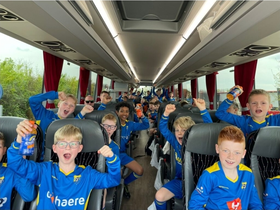 Inmiddels was de bus ook al aangekomen, voordat we de bus in gingen nog even een fotootje met de gehele groep. Met de bus op de achtergrond en allen in het blauw, konden we om 14:00 dan ook daadwerkelijk vertrekken. Door het enthousiasme van alle kids vloog de bus rit voorbij.