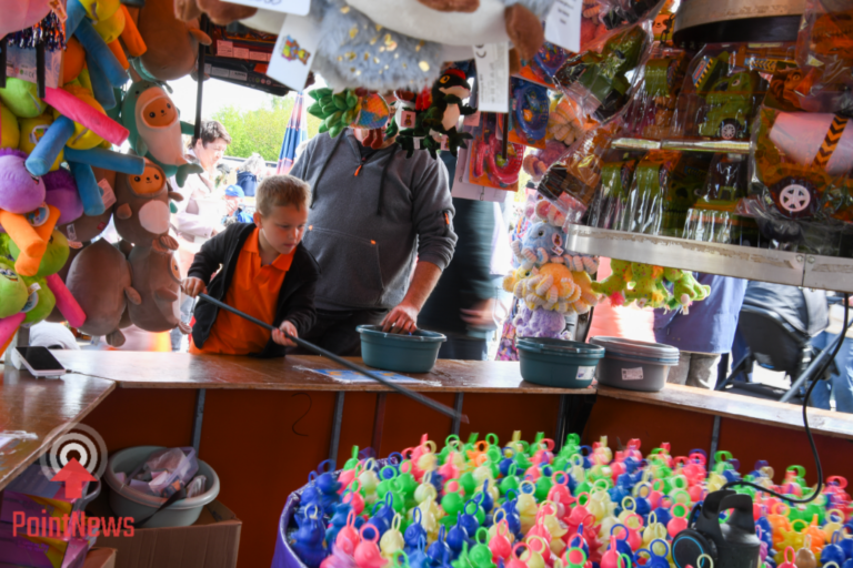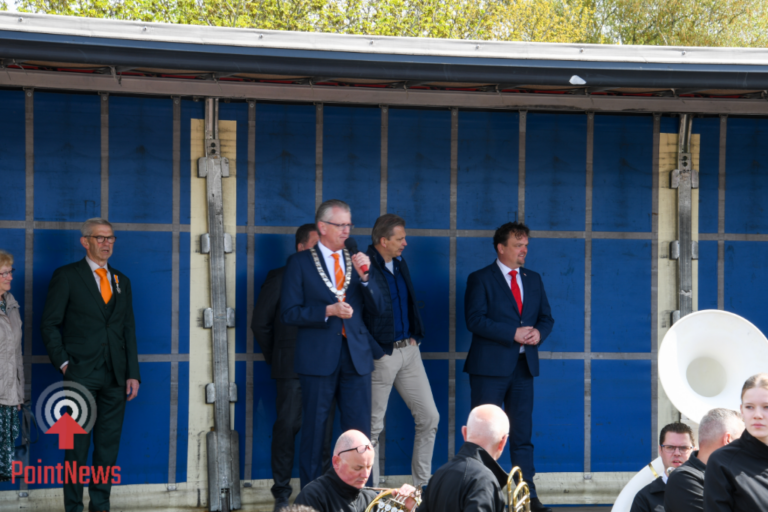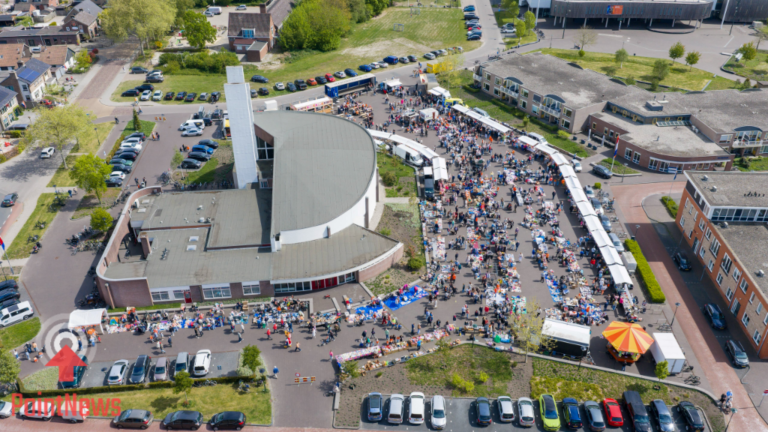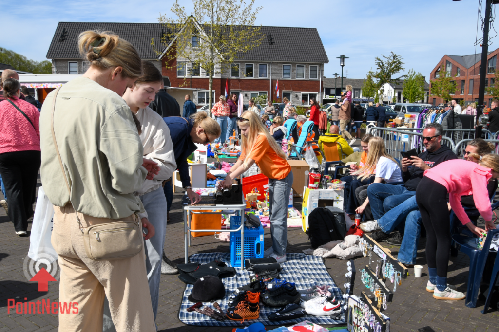 Vroomshoop, 27 april 2026 – In Vroomshoop wordt Koningsdag uitbundig gevierd met een drukbezochte vrijmarkt op het Oranjeplein. Onder een stralende zon kwamen veel bezoekers af op de festiviteiten, waar tal van kraampjes en kleedjes waren opgesteld.