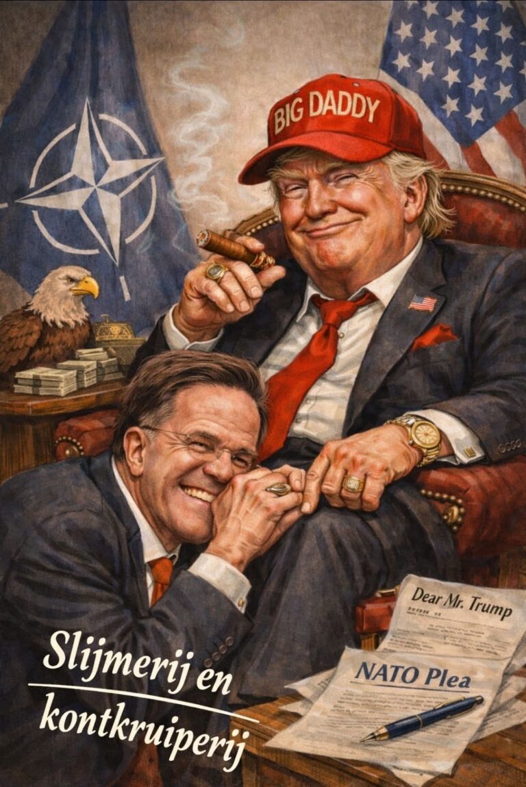 Wij glimlachen en knikken. Diplomatie of slijmerij? Jij beslist. Plaatsvervangende schaamte was het gevoel. Terwijl wij onze nieuwsapps openen bij een kop koffie die wéér